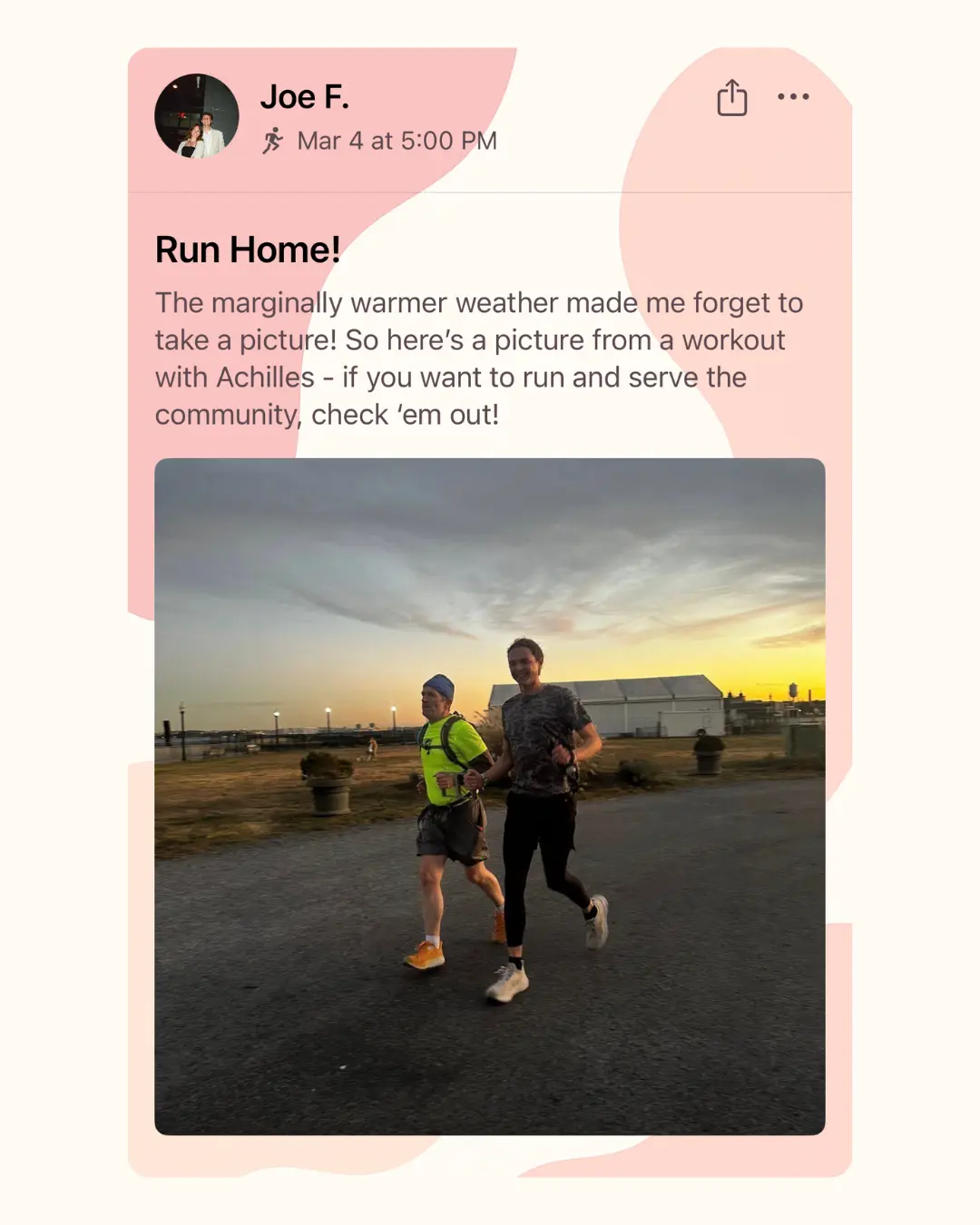 Most fitness apps are designed to track individual metrics and performance - pace, distance, calories, reps.